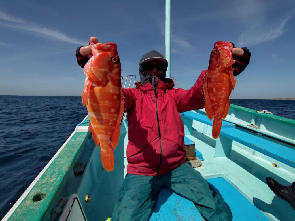 渋りながらも浅場でアカハタを4尾捕った方もいましたが… 魚種少なく、この釣り(根魚五目)には超〜物足りなさを感じる釣行くでした🤔